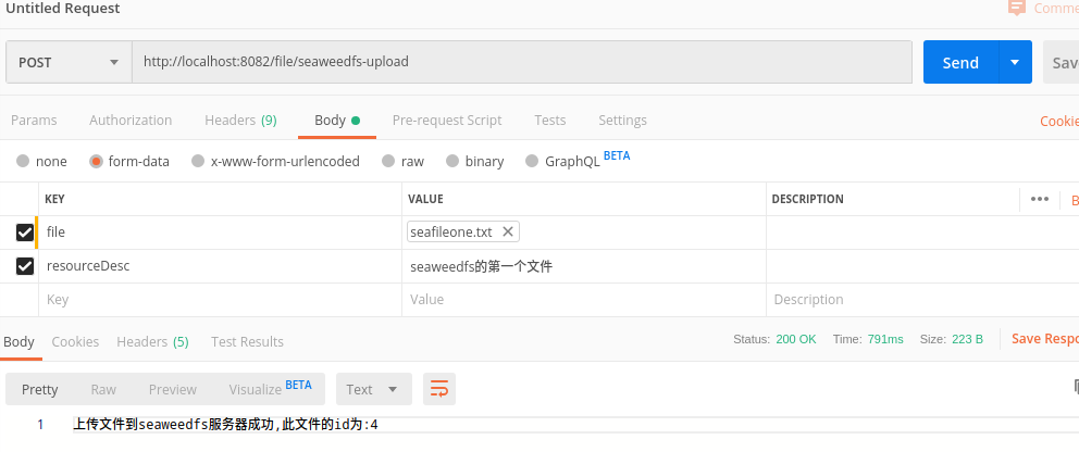 1 curl -F file=@./seafile.txt http://ip地址:9080/5,020dab8398