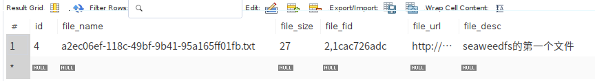 (1)新建Seaweedfs表以及其相应的实体类SeaweedfsDO,用来存放文件信息: