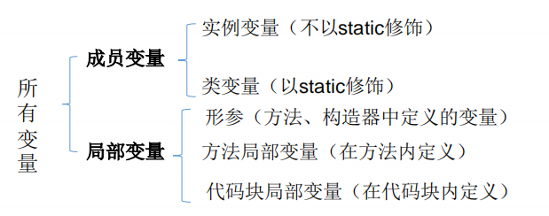 - 同:都有生命周期 异:局部变量除形参外,需显式初始化。