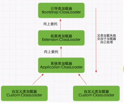 - 总的来说,jvm支持两种类型的类加载器,分别为引导类加载器和自定义类加载器(jvm规范中将所有派生于抽象类ClassLoader的类加载器都划分为自定义类加载器)。