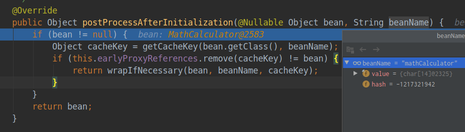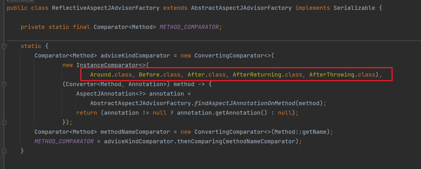 首先AnnotationAwareAspectJAutoProxyCreator继承了AbstractAutoProxyCreator实现了BeanFactoryAware接口,所以在创建AnnotationAwareAspectJAutoProxyCreatorBean的过程中初始化方法里面会调用setBeanFactory方法,在setBeanFactory方法里面调用initBeanFactory来初始化通知者检索帮助类,后面检索通知会用到。