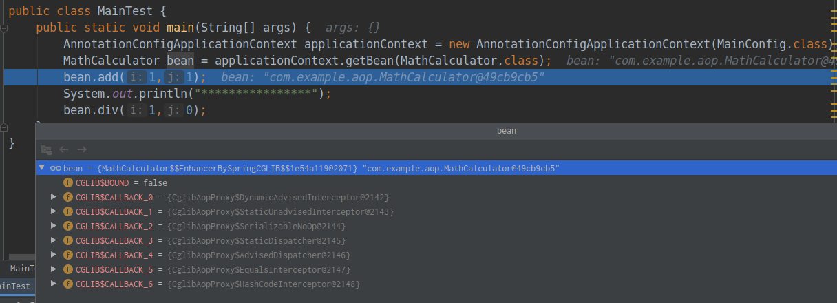 ApplicationContext相关实现类加载bean的时候,会对所有单例且非懒加载的bean,在构造ApplicationContext的时候就会初始化好这些bean,而不会等到使用的时候才去初始化。这也就是单例bean默认非懒加载的应用。 - 结合以上,被代理后的