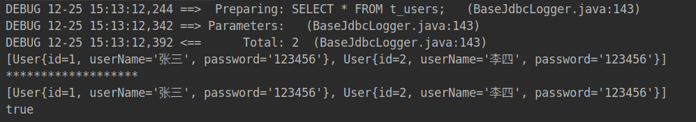 }执行结果如下,可见第二次查询是从一级缓存中获取的: