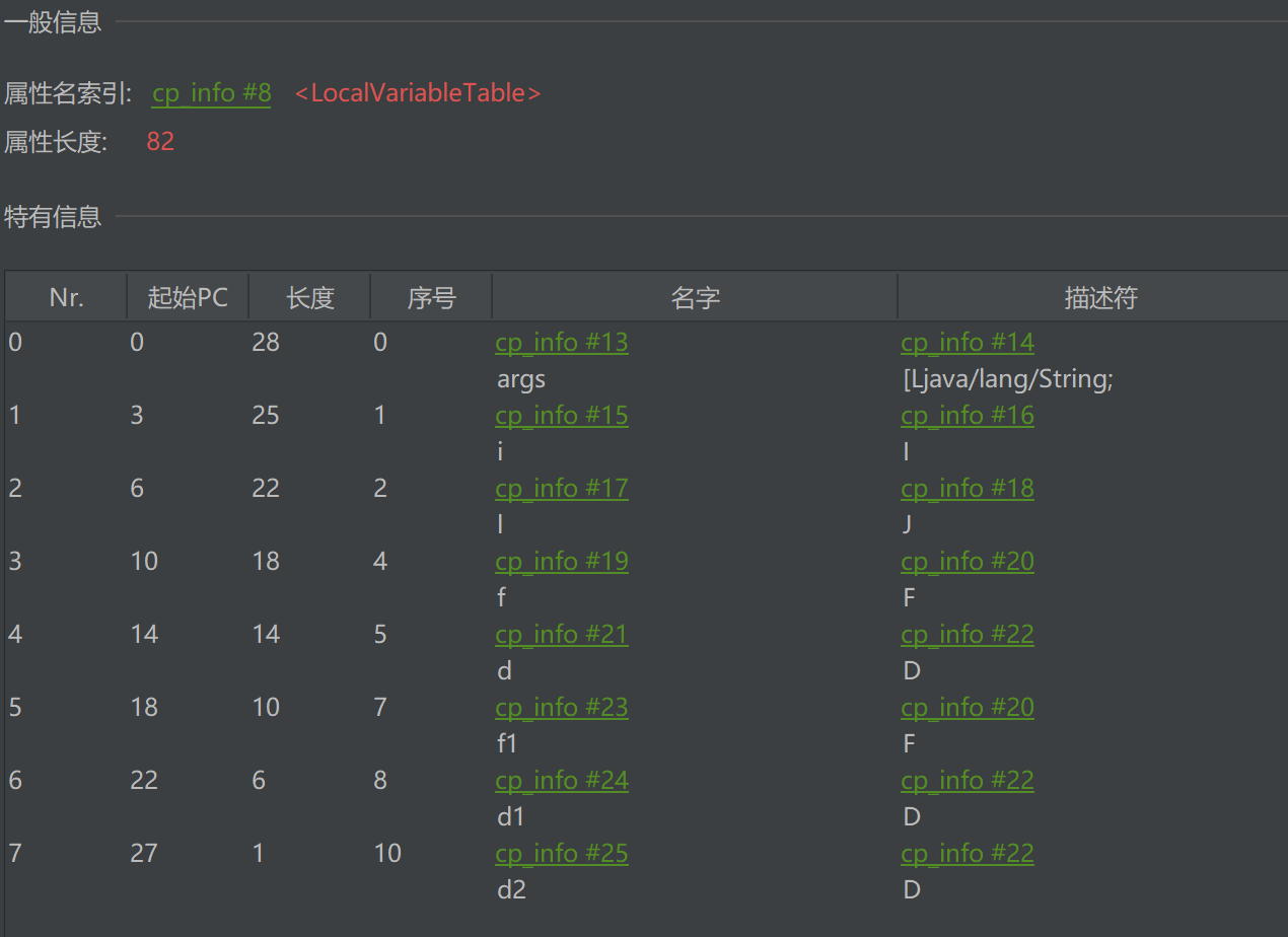 - 和操作数栈一样,long类型以及double类型的值将占据两个单元,其余类型仅占据一个单元。(一个slot占据4个字节)