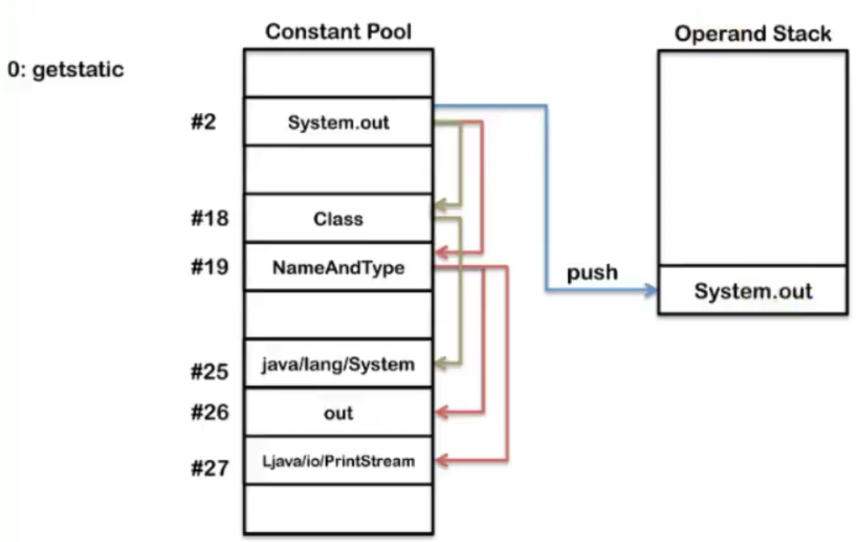 - 一个指令,可以从局部变量表、常量池、堆中对象、方法调用、系统调用中等取得数据,这些数据(可能是值,可能是对象的引用)被压入操作数栈。