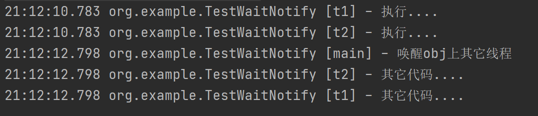 obj.notifyAll()时唤醒所有在waitSet中等待的线程,执行结果: