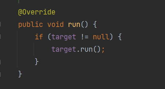 使用带有构造器参数的方式传入Runnable的实例时通过源码可以看到实际上最终这个对象会被赋值给Thread类里一个名为target,类型为Runnable的成员变量。并且在执行Thread.run()方法时会判断target是否为null,如果不为null才优先执行target.run()。