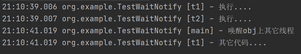 obj.notifyAll()时唤醒所有在waitSet中等待的线程,执行结果: