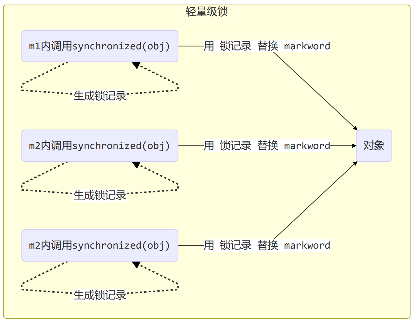 轻量级锁对使用者是透明的,即语法仍然是synchronized。