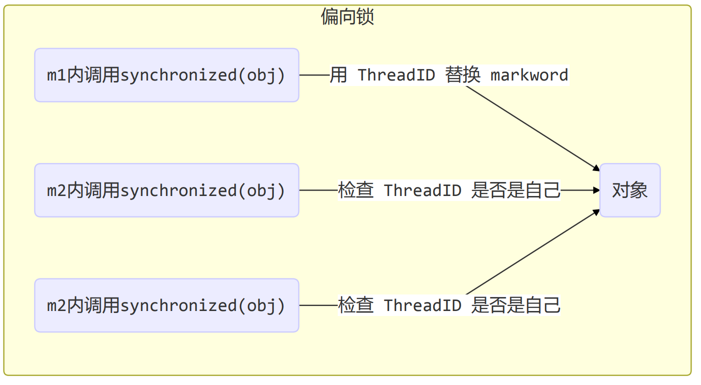 Java 6中引入了偏向锁来做进一步优化:只有第一次使用CAS将线程ID设置到对象的Mark Word头,之后发现 这个线程ID是自己的就表示没有竞争,不用重新CAS。以后只要不发生竞争,这个对象就归该线程所有。