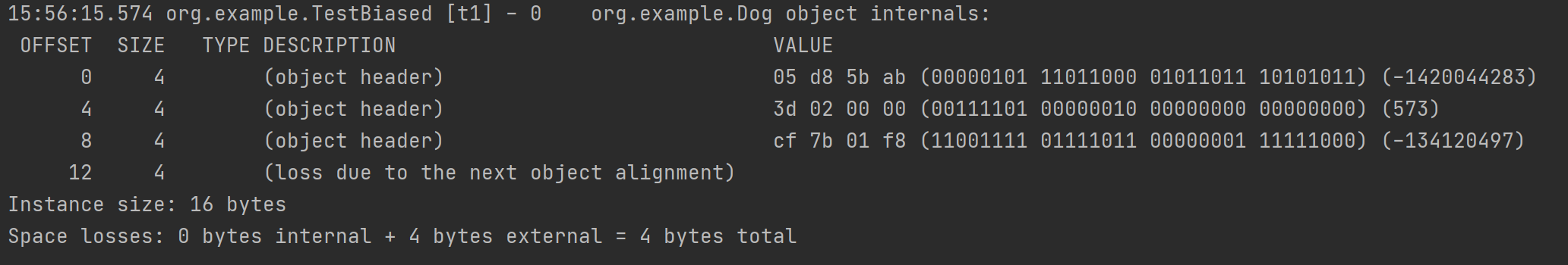 log.debug(ClassLayout.parseInstance(new Dog()).toPrintable());