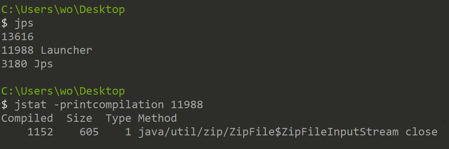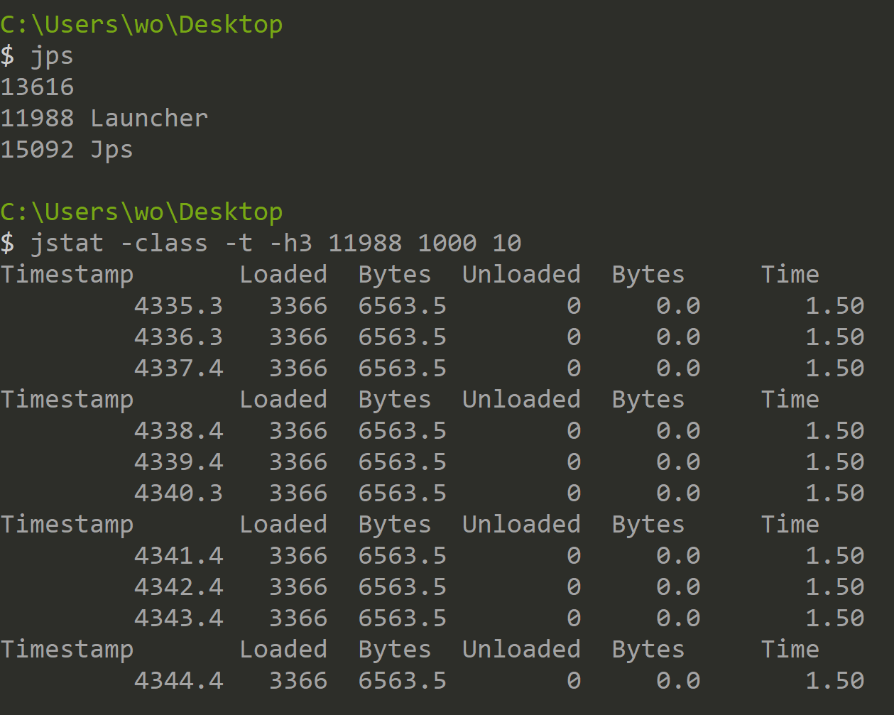 如果某Java班程关闭了默认开启的UsePerfData参数(即使用参数-XX:-UsePerfData),那么jps命令(以及下面介绍的jstat)将无法探知该Java进程。