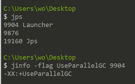 java -XX:+PrintCommandLineFlags:查看那些已经被用户或者JVM设置过的详细的XX参数的名称和值。