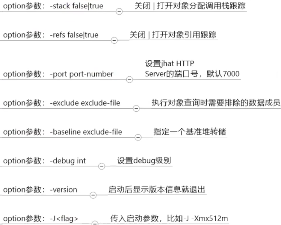 它的基本使用语法为(jhat [option] [dumpfile]):