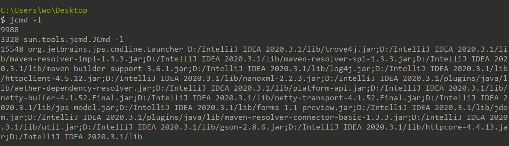 -l:输出应用程序主类的全类名或如果进程执行的是jar包,则输出jar完整路径。
