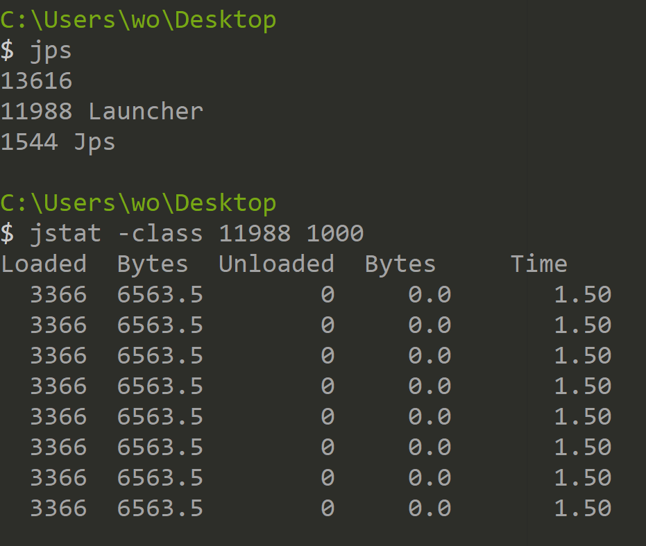 如果某Java班程关闭了默认开启的UsePerfData参数(即使用参数-XX:-UsePerfData),那么jps命令(以及下面介绍的jstat)将无法探知该Java进程。