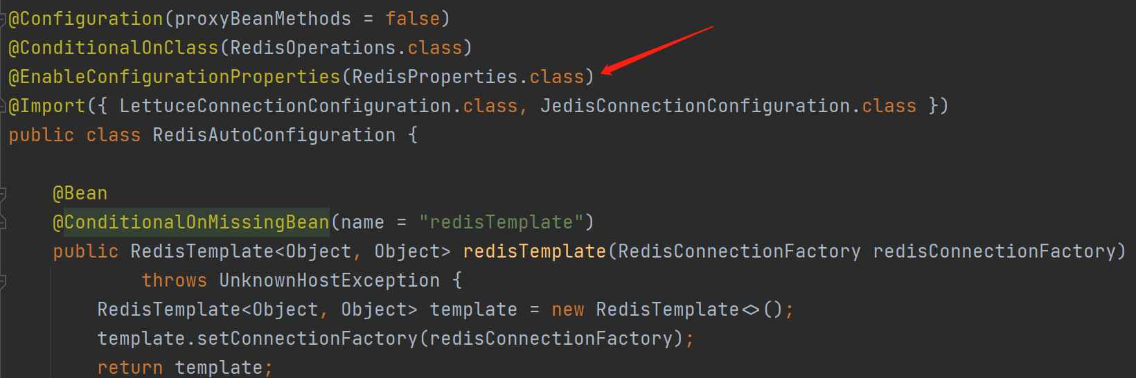 }通过自动配置类找到Redis对应的配置文件RedisProperties: