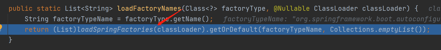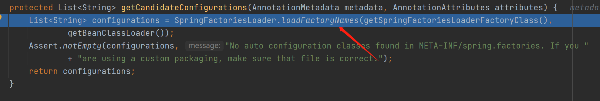 getCandidateConfigurations()会调用SpringFactoriesLoader.loadFactoryNames()–>loadSpringFactories()查找classpath上所有jar包中的META-INF/spring.factories进行加载,从而得到各个组件。