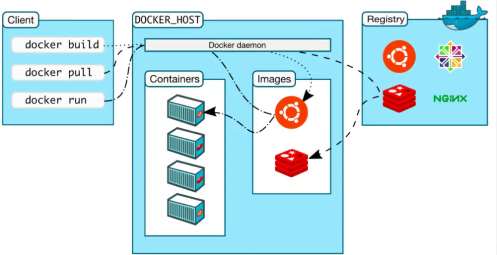 - 镜像(image):一个面向docker容器引擎的只读模板。(相当于Java中的类)