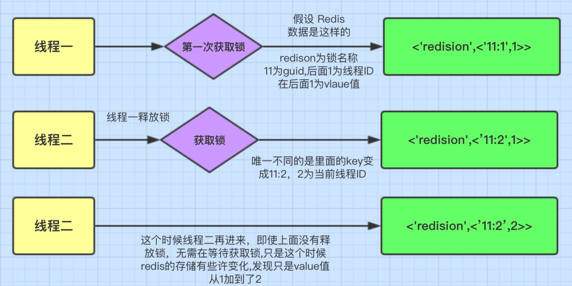 - 保证上锁和解锁都是同一个客户端。