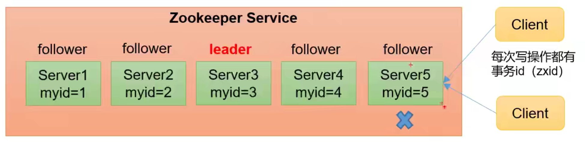 假设ZooKeeper由5台服务器组成,SID分别为1、2、3、4、5,ZXID分别为8、8、8、7、7,并且此时SID为3的服务器是Leader。某一时刻, 3和5服务器出现故障,因此开始进行Leader选举。