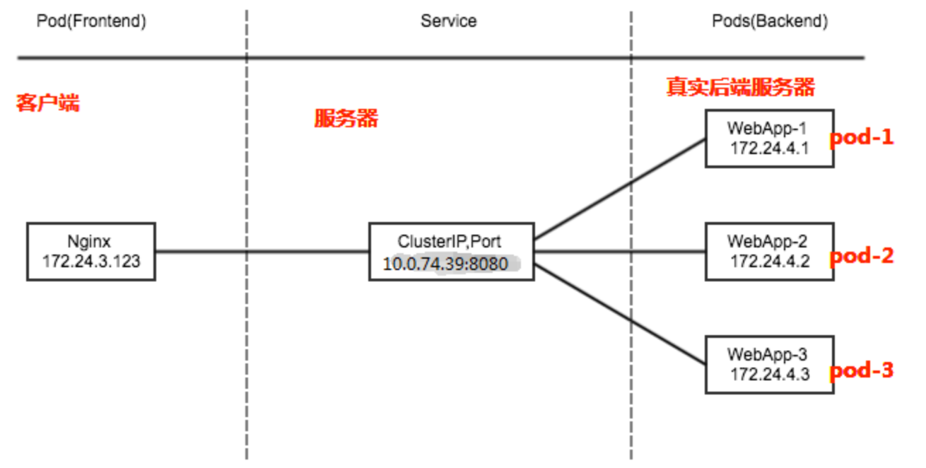 客户端只需要访问Service的IP,Kubernetes则负责建立和维护Service与Pod的映射关系。