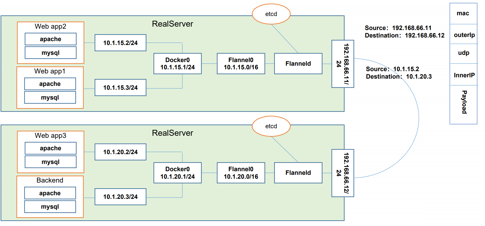 - Flannel监控ETCD中每个Pod的实际地址,并在内存中建立维护Pod节点路由表。