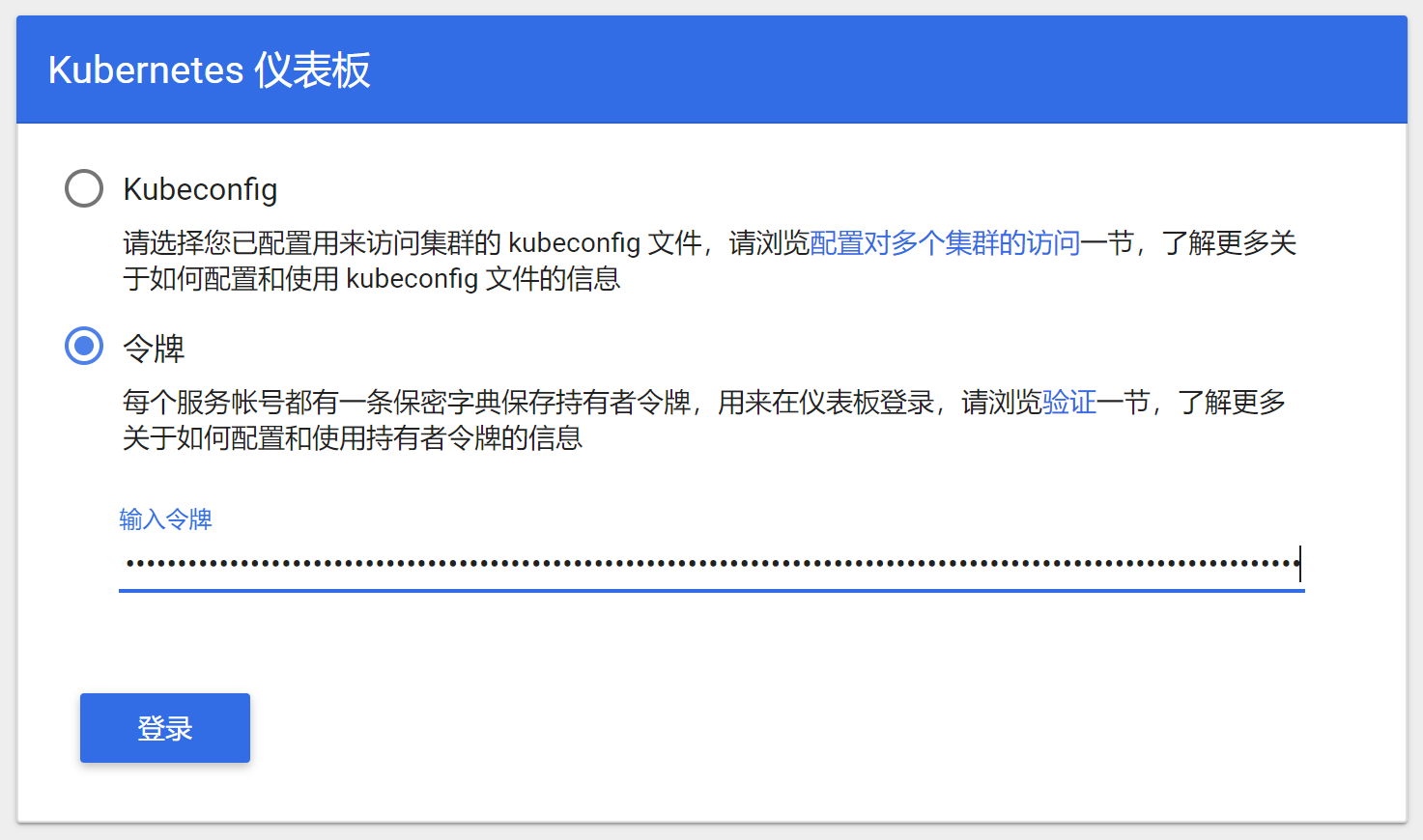 https://192.168.200.20:32212/#!/login即可进入dashboard操作界面,并登录。