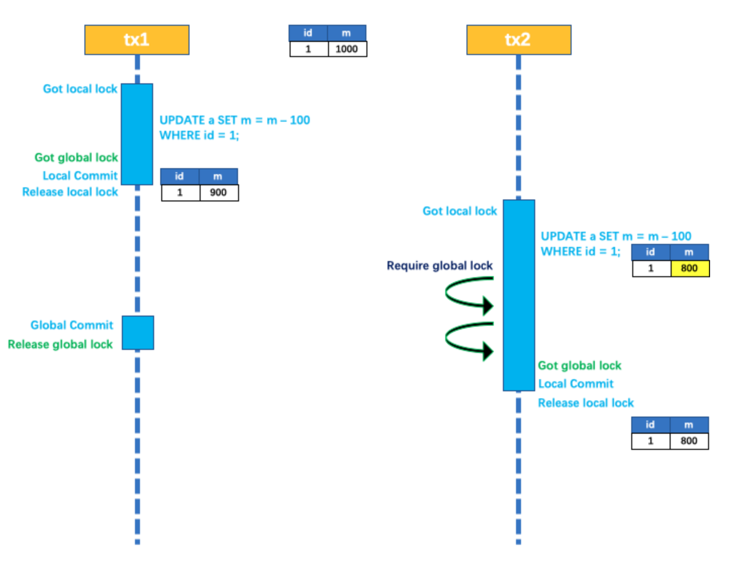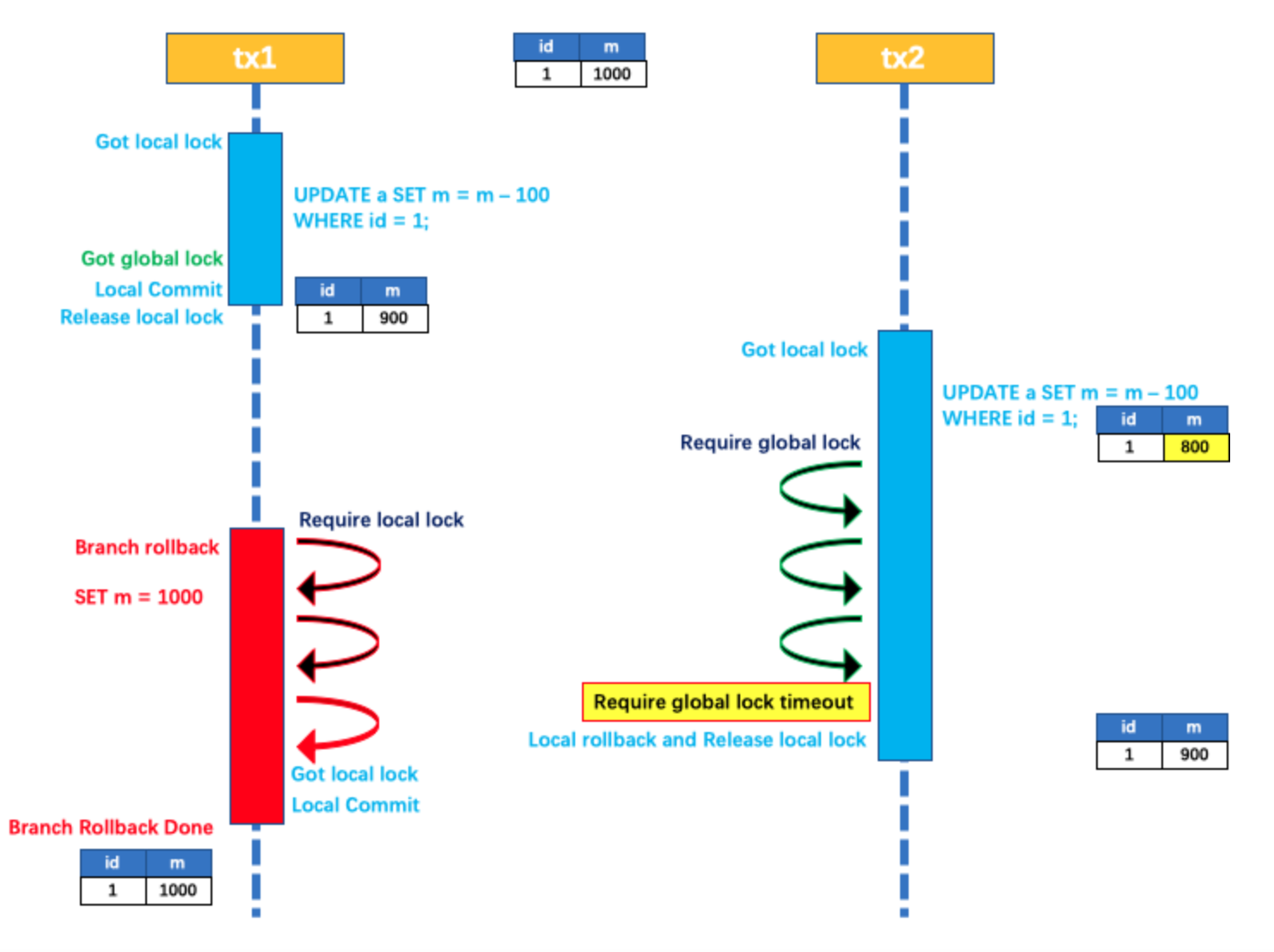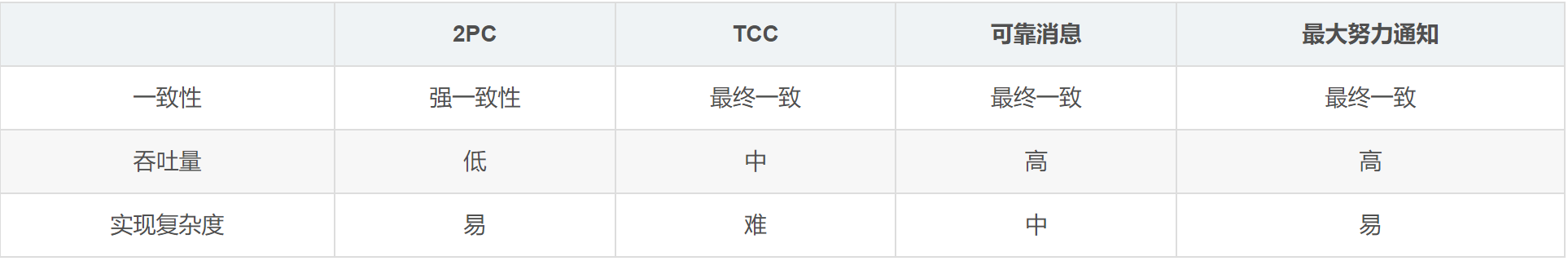 - 而不足之处则在于对应用的侵入性非常强,业务逻辑的每个分支都需要实现try、confirm、cancel三个操作。此外,其实现难度也比较大,需要按照网络状态、系统故障等不同的失败原因实现不同的回滚策略。