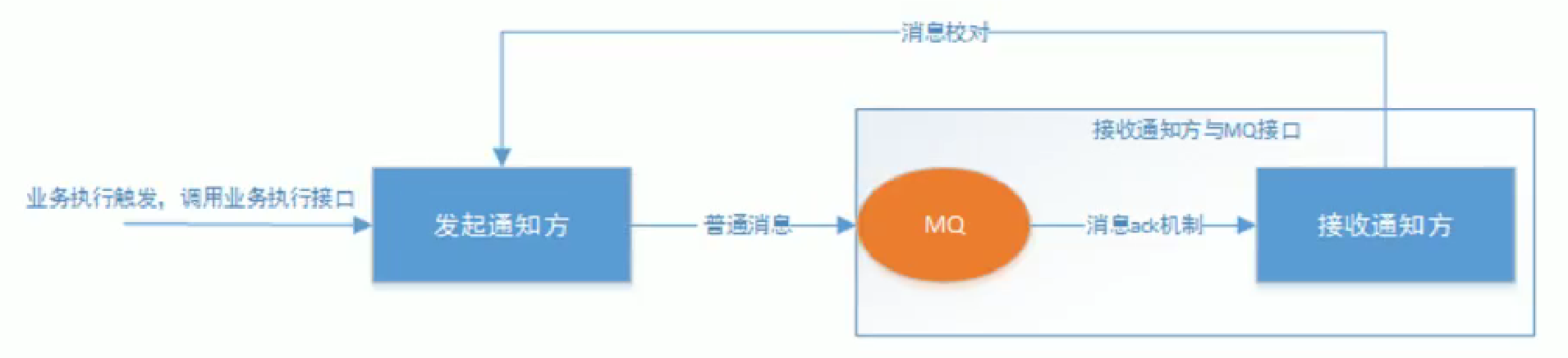 - 发起通知方将通知发给MQ,如果消息没有发出去可由接收通知方主动请求发起通知方查询业务执行结果。