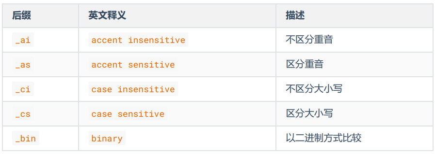 - 如果创建表时没有显式的指定字符集和比较规则,则该表默认用数据库的字符集和比较规则。