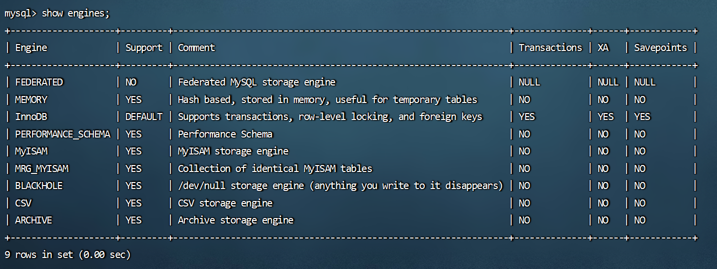 真正的负责了MySQL中数据的存储和提取,对物理服务器级别维护的底层数据执行操作,服务器通过APl与存储引擎进行通信。不同的存储引擎具有的功能不同,这样我们可以根据自己的实际需要进行选取。MySQL 8.0.26默认支持的存储引擎如下: