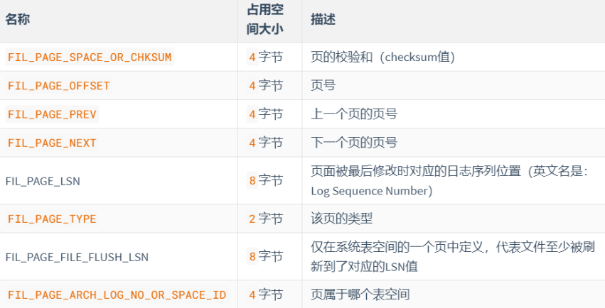 FIL_PAGE_LSN:页面被最后修改时对应的日志序列位置(英文名是:Log Sequence Number)。