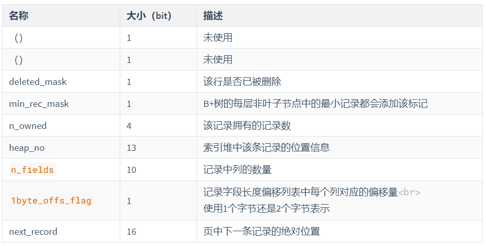 delete_mask:- 这个属性标记着当前记录是否被删除,占用1个二进制位。