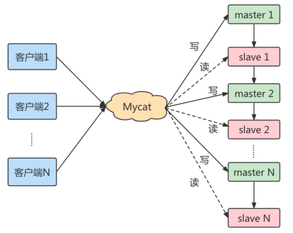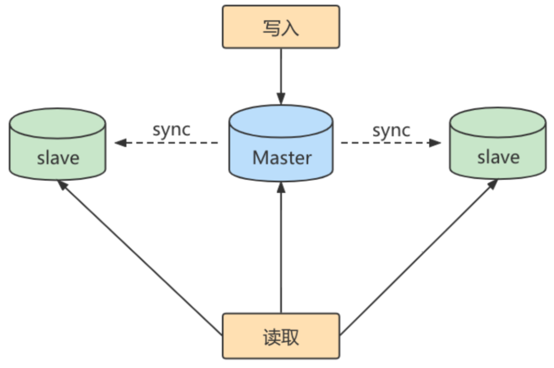 - 其它都是Slave从库,负责读取数据,我们称之为:读库。