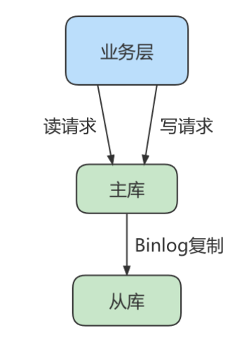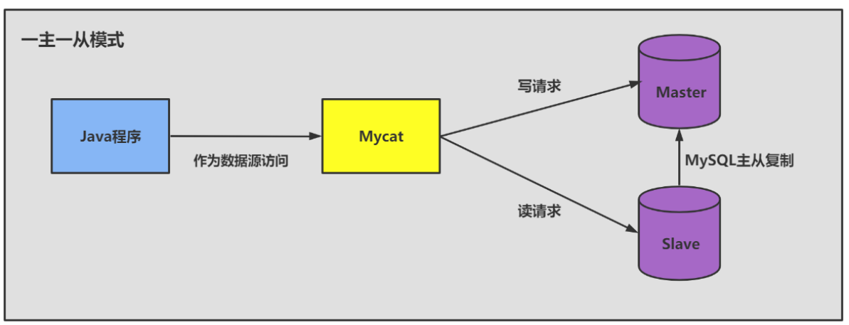 主机用于处理所有写请求,一台从机负责所有读请求,架构图如下: