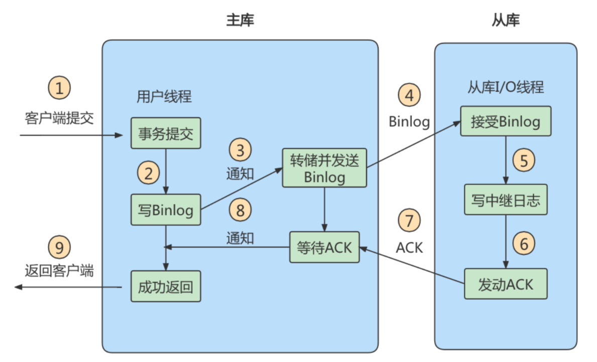 MySQL5.5版本之后开始支持半同步复制的方式。原理是在客户端提交C0MMT之后不直接将结果返回给客户端,而是等待至少有一个从库接收到了Binlog,并且写入到中继日志中,再返回给客户端。