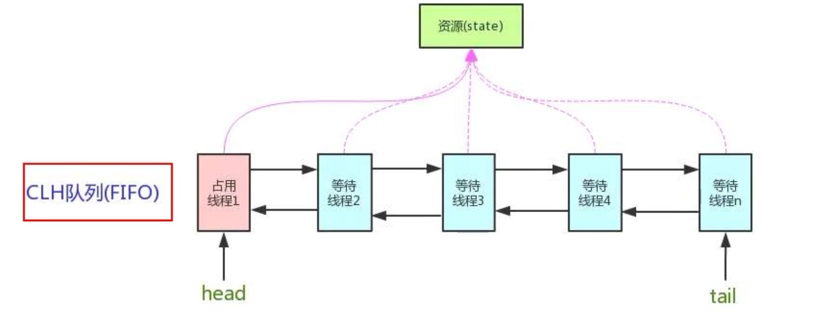 如果共享资源被占用,就需要一定的阻塞等待唤醒机制来保证锁分配。这个机制主要用的是CLH队列的变体实现的,将暂时获取不到锁的线程加入到队列中,这个队列就是AQS同步队列的抽象表现。它将要请求共享资源的线程及自身的等待状态封装成队列的结点对象(Node),通过CAS、自旋以及LockSupport.park()的方式,维护state变量的状态,使并发达到同步的效果。