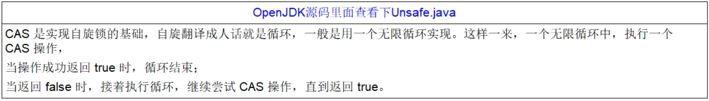 CAS是一条CPU的原子指令(cmpxchg指令),不会造成所谓的数据不一致问题,Unsafe提供的CAS方法(如compareAndSwapXXX)底层实现即为CPU指令cmpxchg。执行cmpxchg指令的时候,会判断当前系统是否为多核系统,如果是就给总线加锁,只有一个线程会对总线加锁成功,加锁成功之后会执行cas操作,也就是说CAS的原子性实际上是CPU实现独占的,比起用synchronized重量级锁,这里的排他时间要短很多,所以在多线程情况下性能会比较好。