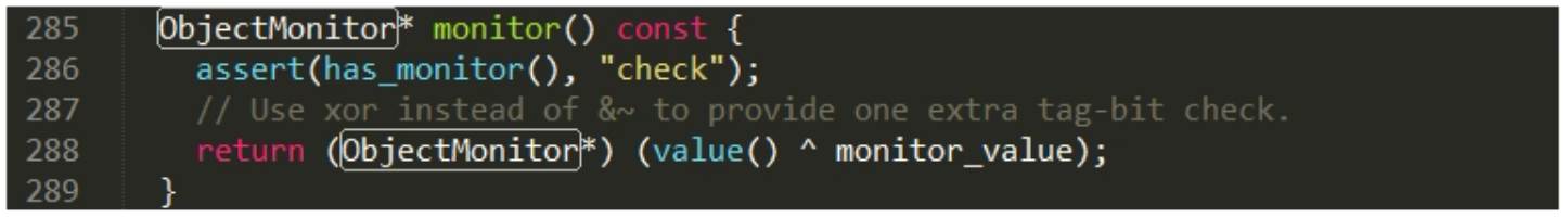 JVM中的同步就是基于进入和退出管程(Monitor)对象实现的。每个对象实例都会有一个Monitor,Monitor可以和对象一起创建、销毁。 Monitor是由ObjectMonitor实现,而ObjectMonitor是由C++的ObjectMonitor.hpp文件实现,如下所示:
