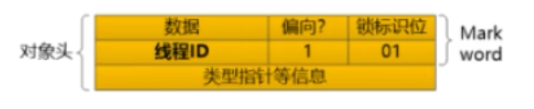 - 当线程A第一次竞争到锁时,通过操作修改Mark Word中的偏向线程ID、偏向模式。