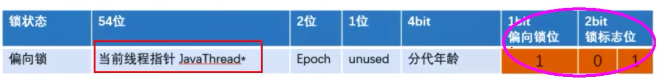 技术实现:一个synchronized方法被一个线程抢到了锁时,那这个方法所在的对象就会在其所在的Mark Word中将偏向锁修改状态位,同时还会有占用前54位来存储线程指针作为标识。若该线程再次访问同一个synchronized方法时,该线程只需去对象头的Mark Word中去判断一下是否有偏向锁指向本身的ID,无需再进入Monitor去竞争对象了。