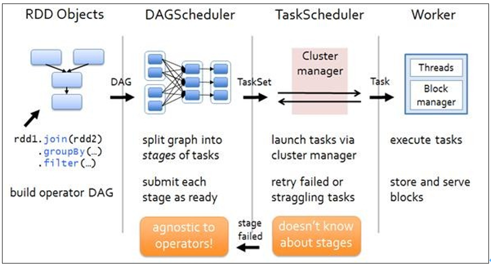 缓存有可能丢失,或者存储于内存的数据由于内存不足而被删除,RDD的缓存容错机制保证了即使缓存丢失也能保证计算的正确执行。通过基于RDD的一系列转换,丢失的数据会被重算,由于RDD的各个Partition是相对独立的,因此只需要计算丢失的部分即可,并不需要重算全部Partition。