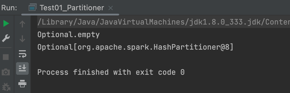 Optional<Partitioner> partitioner1 = reduceByKeyRDD.partitioner();