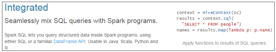 - 一个叫SQLContext,用于Spark自己提供的SQL查询;