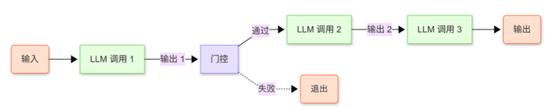 提示链(Prompt Chain)是一种基本的工作流模式,专注于将复杂任务分解为一 系列更简单、相互关联的步骤。在这种工作流中,利用增强型 LLM 的核心功能,一个 LLM 调用的输出成为后续调用的输入,从而创建一系列处理阶段。这种顺序性质允许整个调用链以更受控和审慎的方式解决问题,尤其是在任务本身包含多个方面的时候。提示链的一个关键方面是在中间阶段引入程序化检查的能力,通常称为“门控” (Gate)。门控充当质量控制存档点,确保流程保持在正轨上,并且中间输出符合预定义的标准。例如,在增强型 LLM 生成文档的初始草稿后,可以实施门控来检查特定的关键字或文体元素,然后继续进行下一个阶段。